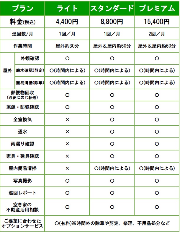 充実の空き家管理サービスをご用意しております